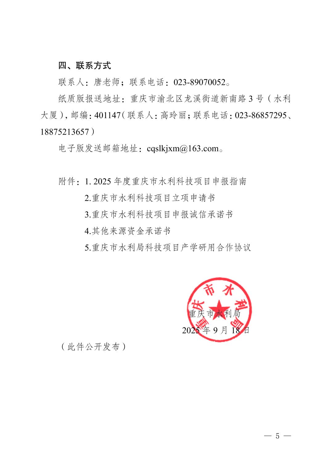 2025年度重庆市水利科技项目申报指南